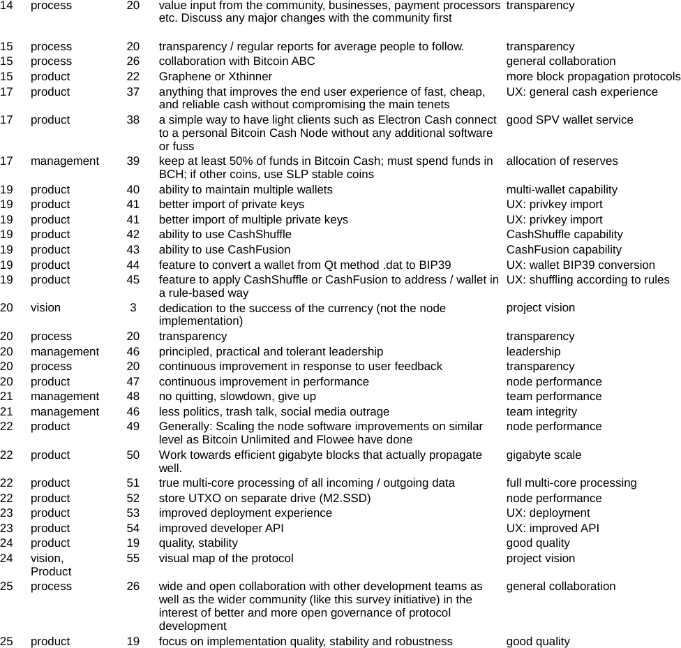 - 我们已经收集了在2020年3月调查的社区反馈(共25份),并将其存储在PCS存储库中。我们开始对这些反馈进行评估(请参阅附录B),并将评估输出存储在该存储库的输出部分。经过更多评估后,我将报告一些摘要结果,从而使这些摘要应该更易于理解。仅仅阅读这些反馈就已经让我受益匪浅。许多用户的问题让我印象深刻。由于我们没有从中国社区那里收到太多反馈,因此我在考虑于4月份进行针对性的调查,以了解我们是否可以更清楚地了解他们的需求。
